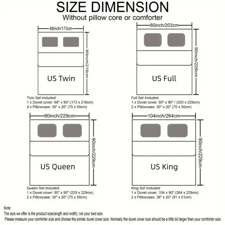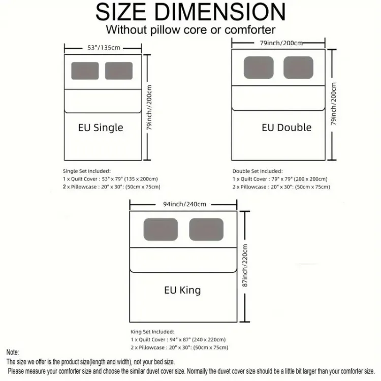 includes 1 duvet cover + 2 pillowcases, suitable for standard Double bed size (Queen/King optional).