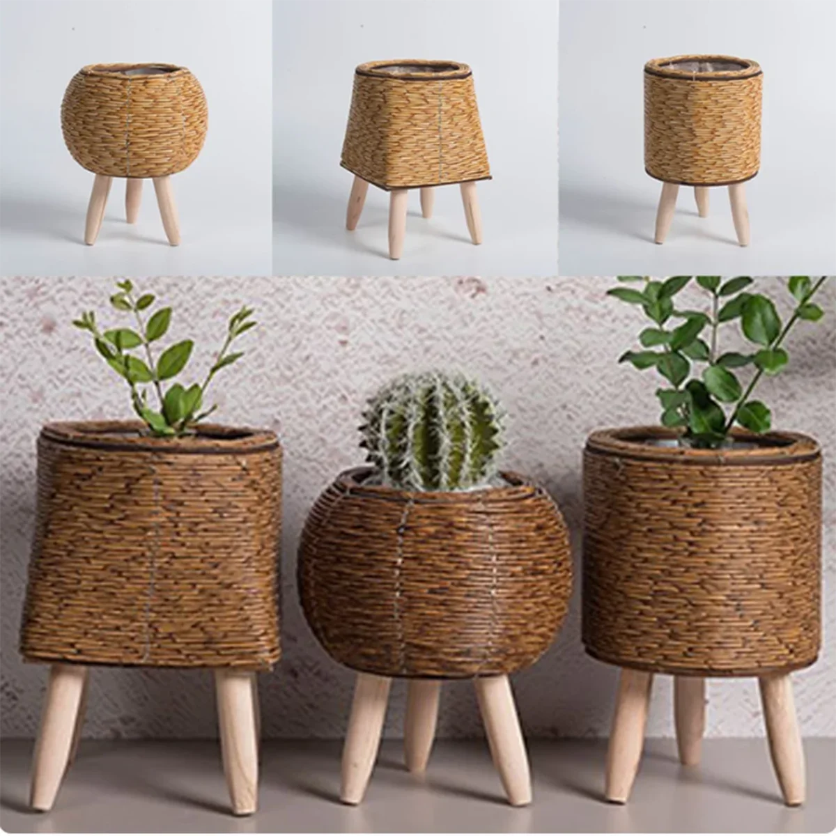 Fashion Rattan Woven Flower Pot Creative Flower Planters With Removable Legs Durable Hand Wove Plant Stand
