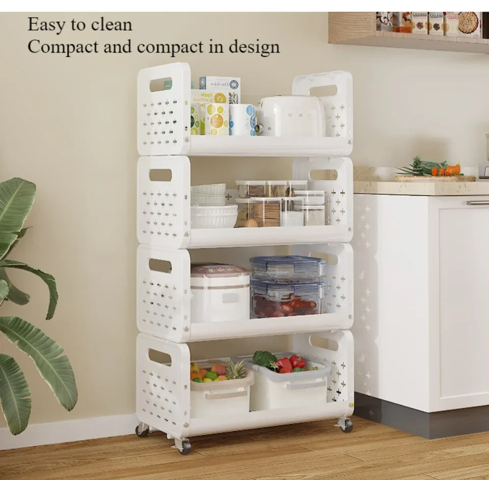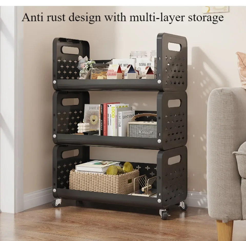 Kitchen Basket Storage Rack Multi-storey Floor Standing Moveble Trolley Household and Vegetables Multi Functional Small Carts