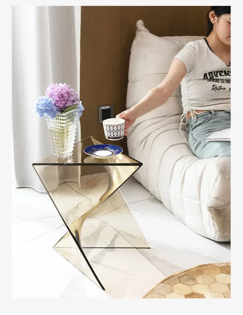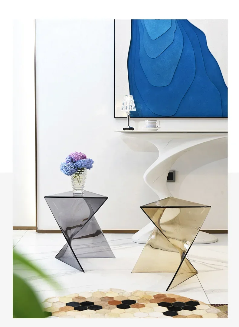 New Acrylic Sofa Living Room Transparent Geometric Coffee Table Minimalist Designer Corner Table